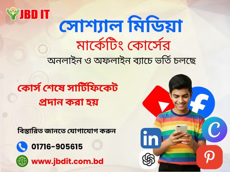 জেবিডি আইটি আপনাদের জন্য নিয়ে এসেছে সম্পূর্ণ অনলাইন ভিত্তিক সোশ্যাল মিডিয়া মার্কেটিং কোর্স। যেখানে আপনি সোশ্যাল মিডিয়া মার্কেটিংয়ের A থেকে Z হাতে-কলমে শিখতে পারবেন।
