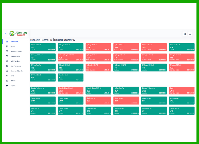 সহজ ড্যাশবোর্ডের মাধ্যমে রুম ম্যানেজমেন্ট, বুকিং ও গেস্ট রেজিস্ট্রেশন দ্রুত করা সম্ভব।